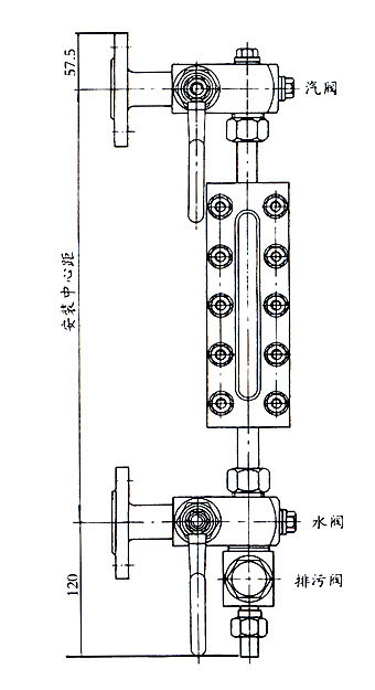 結(jié)構(gòu)原理: 儀表上、下兩端裝有法蘭與鍋爐或容器的法蘭連通,通過(guò)水位計(jì)可直接觀察到容器內(nèi)液汽的實(shí)際高度