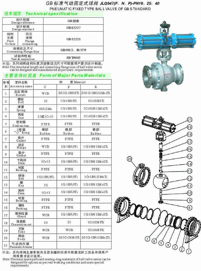 GB標(biāo)準(zhǔn)氣動(dòng)固定式球閥 Q647