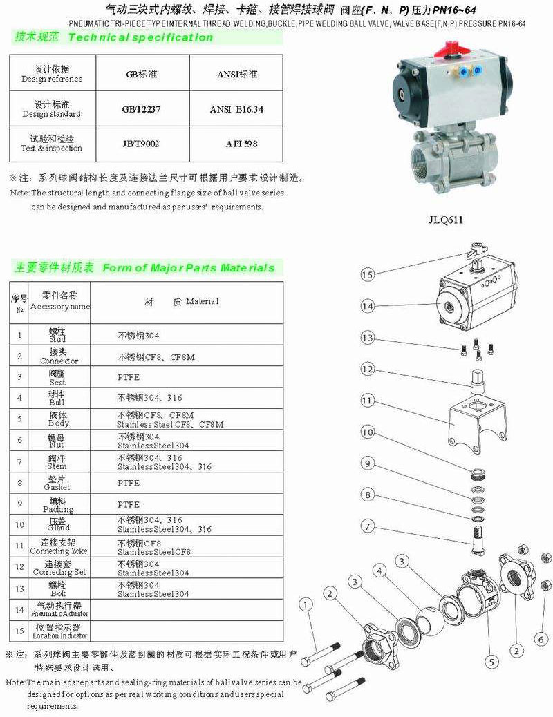 EGQ6氣動三塊式內(nèi)螺紋/焊接/卡箍/接管焊接球閥