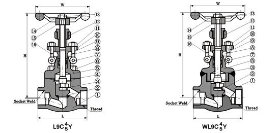 雙正鍛鋼截止閥有三種閥蓋設計形式.第一種是螺栓式閥蓋,按這種設計形式設計的閥門,其閥體與閥蓋用螺栓螺母連接,纏繞式墊片(316夾柔性石墨制造)密封.客戶有特殊要求時也可采用金屬環(huán)連接.第二種設計形式是焊接式閥蓋,按這種設計形式的閥門,其閥體與閥蓋用螺紋連接,全焊密封.客戶有特殊要求時也可采用透焊連接.第三種是自密封閥蓋,按這種設計形式設計的閥門,其閥體與閥蓋用螺紋連接,內(nèi)壓自密環(huán)密封.